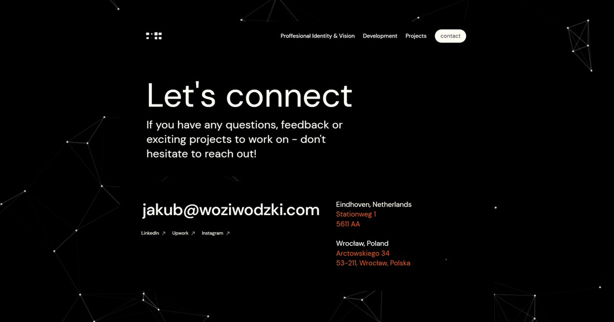 The design of this website underwent a meticulous process, starting with gathering inspiration and consulting experts. It then advanced through conceptual models and Wireframing in Figma and ultimately developed in Framer. The emphasis was placed on tailoring it to the intended viewers and adhering to the design specifications of an educational portfolio. Great care was taken in designing the navigation system, taking into account various possibilities to ensure an intuitive and cohesive user experience. There were considerations regarding personal brand identity design and making the website responsive for multiple device form factors. Ultimately, taking feedback from both colleagues and experienced advisors has proven to be invaluable in perfecting this website to its ultimate, sophisticated yet simple form.